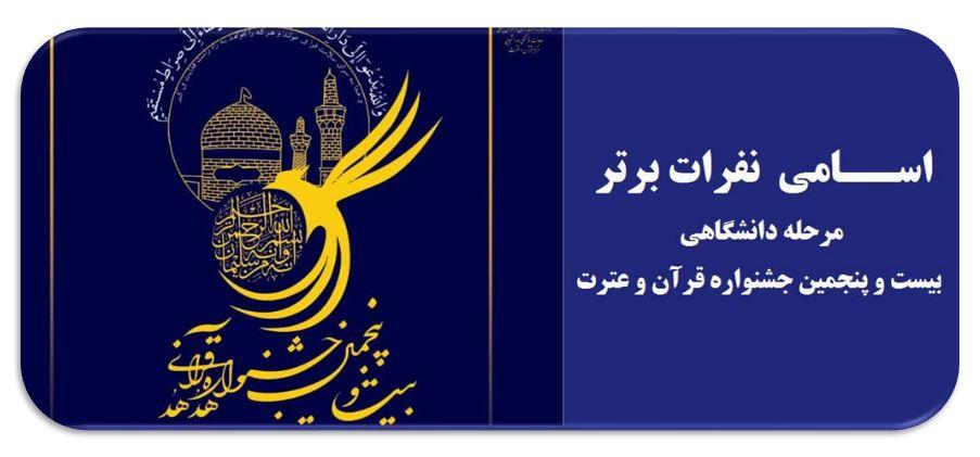 اسامی نفرات برتر مرحله دانشگاهی بیست و پنجمین جشنواره قرآن و عترت ۰۷ آبان ۱۳۹۹ | ۱۵:۵۳ کد : ۱۳۰۶۴ اخبار مهم ارسال به دیگران نام شما ایمیل شما ایمیل دریافتکننده ارسال انصراف تعداد بازدید:۱۵۲۷ اسامی نفرات برتر مرحله دانشگاهی بیست و پنجمین جشنواره قرآن و عترت