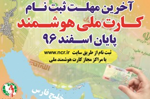 بدینوسیله به اطلاع عموم همکاران میرساند که با توجه به اعلام اداره کل ثبت احوال استان اردبیل مبنی به اینکه اعتبار کارتهای شناسائی کاغذی توسط هیئت محترم دولت تا آخر سال ۹۶ تعیین شده و به احتمال قوی کارت هوشمند ملی پس از آن در اکثر ادارات و سازمانهای دولتی بصورت کاربردی و بعنوان کارتی جامع و الزامی به بهره برداری خواهد رسید. لذا با توجه به فرصت اندک باقیمانده از سالجاری جهت جلوگیری از بروز هر گونه مشکلات در سنوات آتی تمامی همکاران در اسرع وقت با مراجعه به سایت www.ncr.ir نسبت به ثبت نام و تعیین ایستگاه مراجعه و تکمیل مراحل درخواست خود و اعضا خانواده اقدام نمایند.