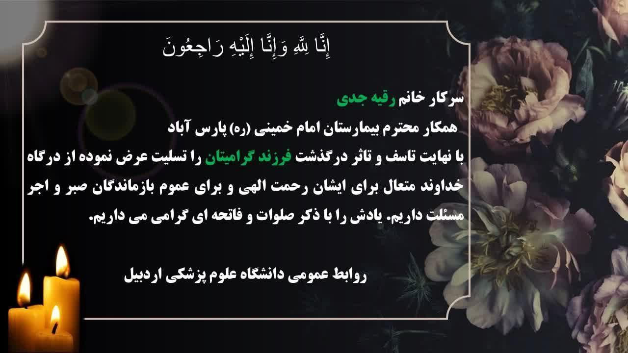 تسلیت به خانواده محترم خانم رقیه جدی