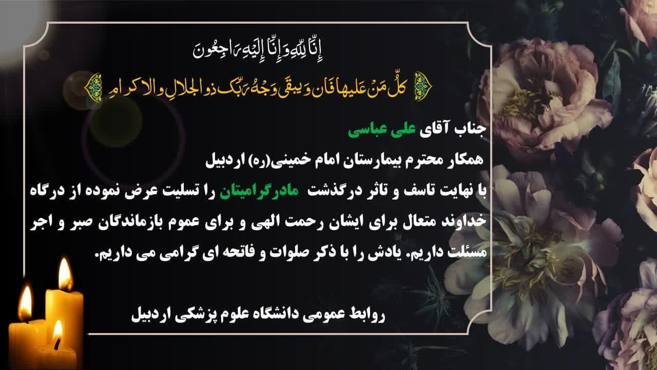 تسلیت به خانواده محترم آقای علی عباسی