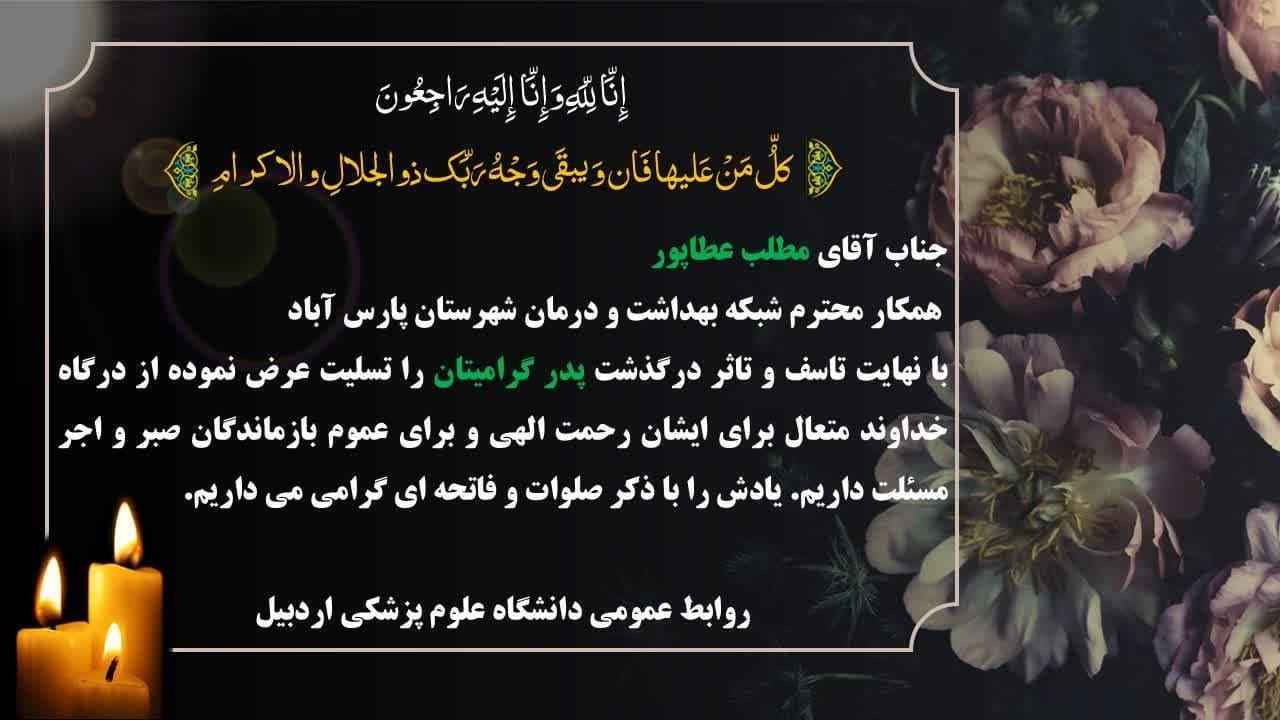 تسلیت به خانواده محترم آقای مطلب عطاپور