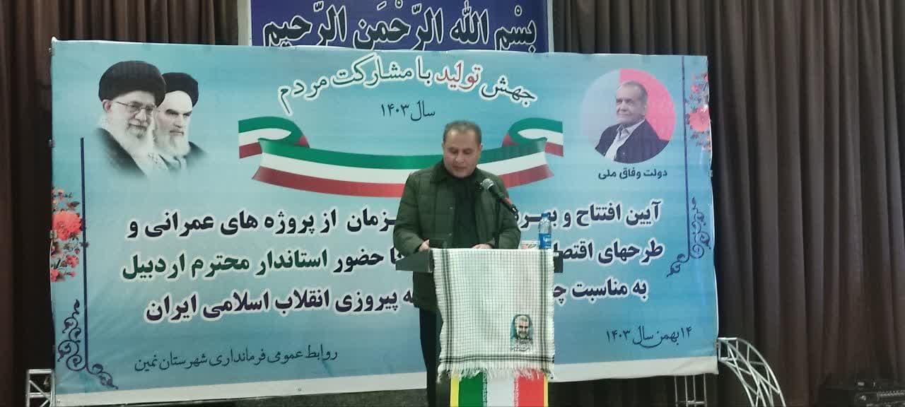 به گزارش روابط عمومی دانشگاه علوم پزشکی اردبیل، همزمان با سومین روز دهه مبارک فجر، آیین افتتاح و بهره برداری همزمان از پروژه های عمرانی و طرح های اقتصادی شهرستان نمین با حضور دکتر مسعود امامی یگانه، استاندار اردبیل، دکتر بهزاد داورنیا، سرپرست دانشگاه و جمعی از مسئولین استانی در سالن همایش های شبکه بهداشت و درمان نمین برگزار شد.