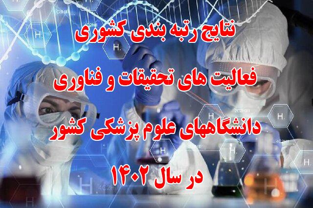 نتایج رتبه بندی کشوری فعالیت های تحقیقات و فناوری دانشگاههای علوم پزشکی کشور در سال ۱۴۰۲