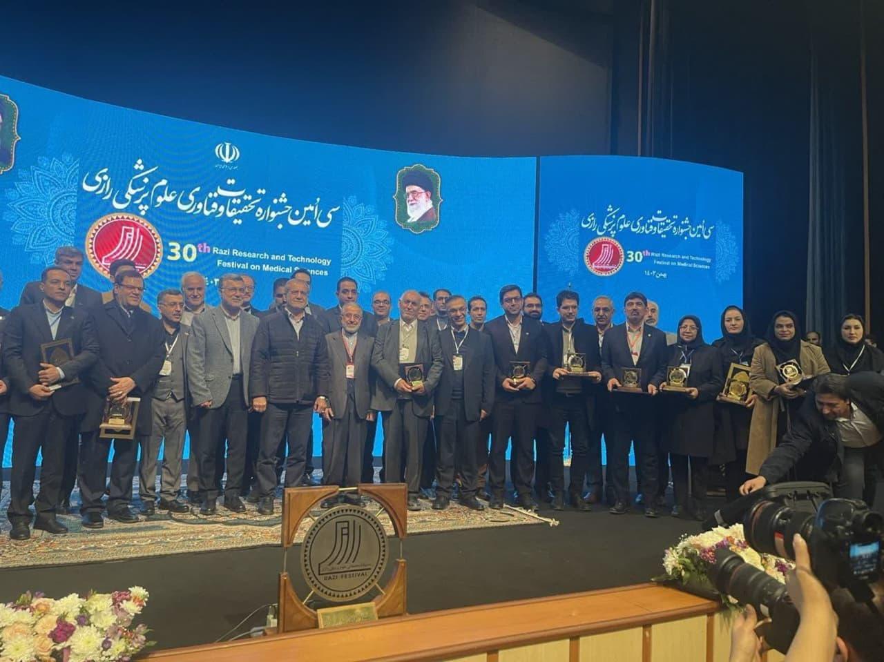 در سی امین دوره جشنواره رازی که با حضور دکتر مسعود پزشکیان، رئیس جمهور، دکتر ظفرقندی، وزیر بهداشت و جمعی از مسئولین کشوری در سالن امام خمینی (ره) دانشگاه علوم پزشکی شهید بهشتی برگزار شد، از کمیته تحقیقات و فناوری دانشجویی دانشگاه علوم پزشکی اردبیل بدلیل کسب رتبه اول دانشگاه های تیپ دو، تجلیل و لوح سپاس و تندیس این جشنواره توسط رئیس جمهور به خانم دکتر الهام صفرزاده، رئیس کمیته تحقیقات و فناوری دانشجویی دانشگاه اهدا شد.