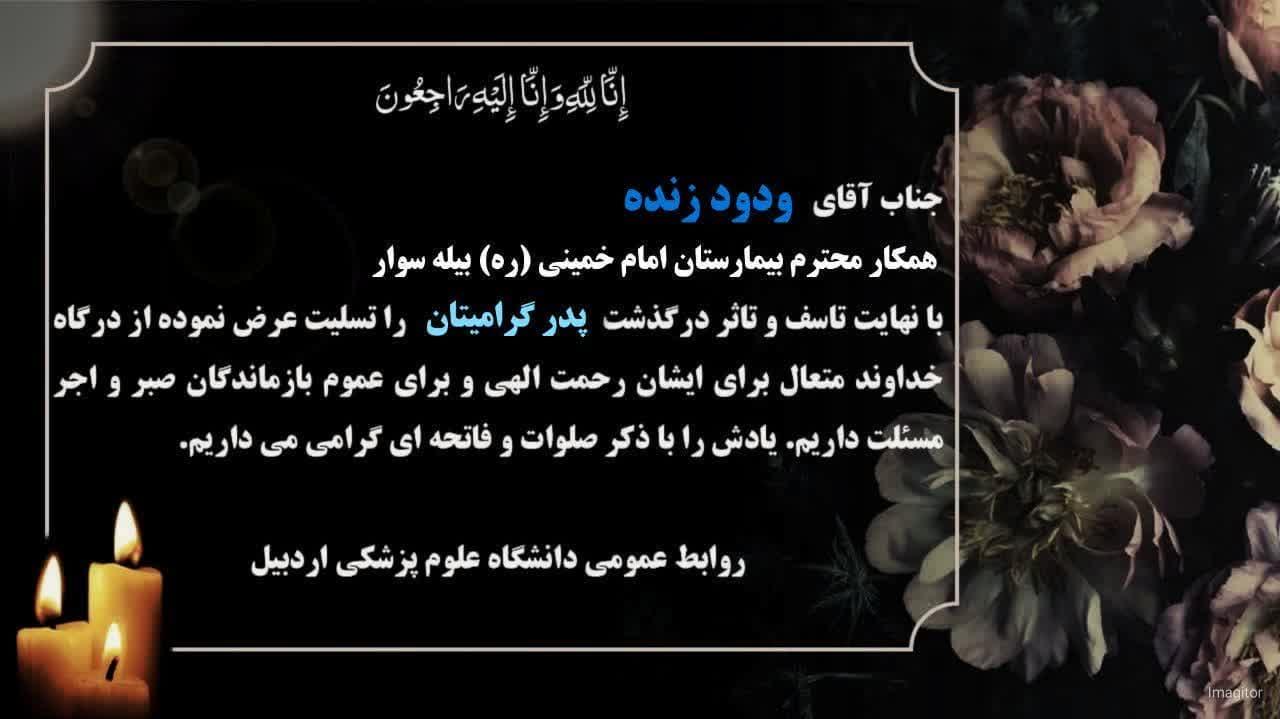 تسلیت به خانواده محترم آقای ودود زنده
