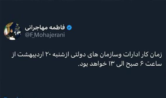 فاطمه مهاجرانی، سخنگوی دولت در حساب کاربری خود در شبکه اجتماعی ایکس نوشت: