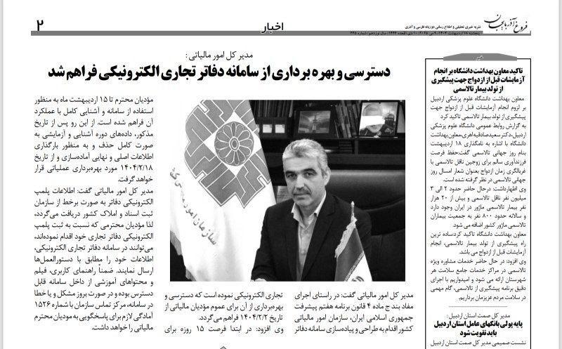 دانشگاه در رسانه ها : انتشار خبر معاونت بهداشت دانشگاه در روزنامه سراسری فروغآذربایجان ۲۴ اردیبهشت ۱۴۰۴ | ۲۱:۳۰ کد : ۳۷۰۸۰ اخبار کوتاه ارسال به دیگران نام شما ایمیل شما ایمیل دریافتکننده ارسال انصراف تعداد بازدید:۱۹