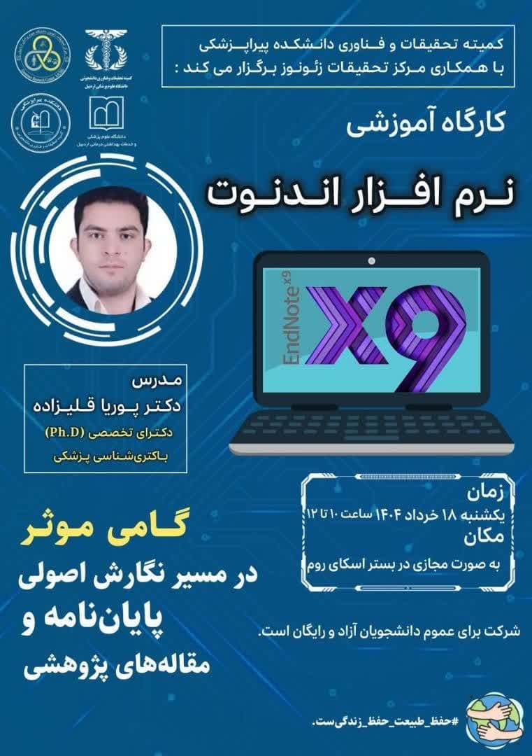کمیته تحقیقات و فناوری دانشجویی دانشکده پیراپزشکی با همکاری مرکز تحقیقات زئونوز دانشگاه برگزار می کند: کارگاه آموزشی نرم افزار اندنوت (ENDNOTE)