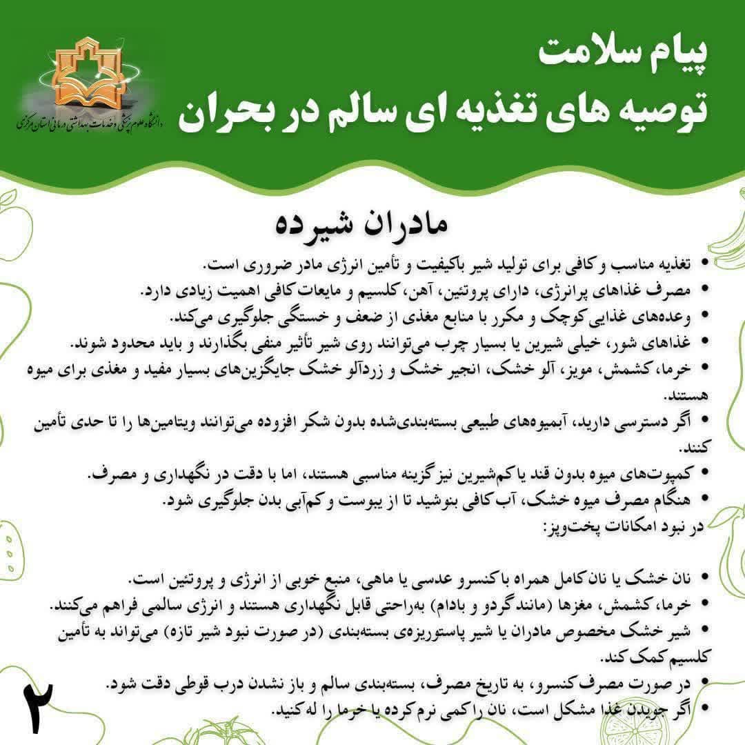 توصیه های تغذیه ای سالم در شرایط بحران برای مادران باردار، شیرده، کودکان و نوجوانان ۳۰ خرداد ۱۴۰۴ | ۱۲:۵۱ کد : ۳۷۸۳۲ اطلاعیه ها ارسال به دیگران نام شما ایمیل شما ایمیل دریافتکننده ارسال انصراف تعداد بازدید:۶