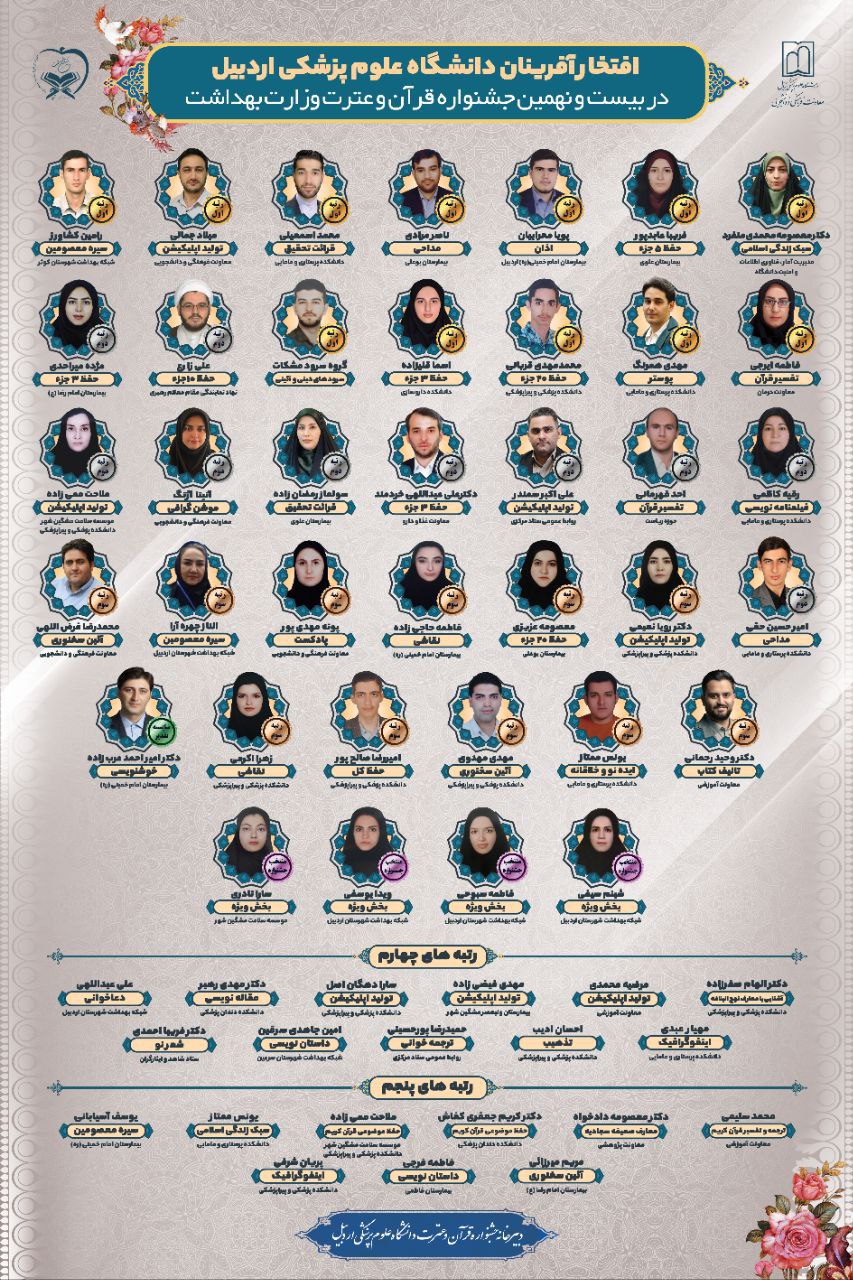افتخار آفرینان دانشگاه علوم پزشکی اردبیل در بیستونهمین جشنواره قرآن و عترت وزارت بهداشت