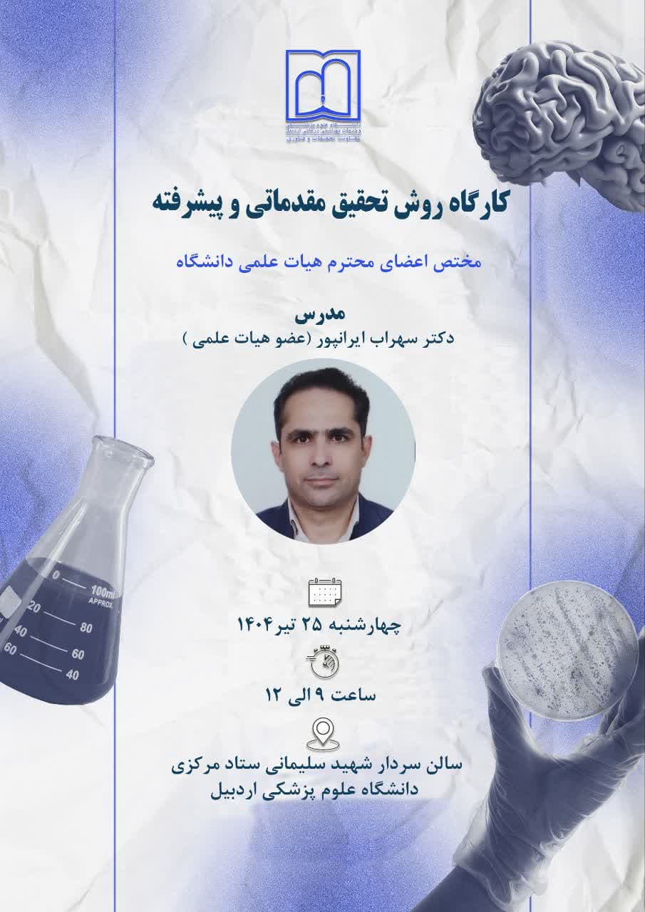 کارگاه روش تحقیق مقدماتی و پیشرفته، ویژه اعضای هیات علمی دانشگاه ۲۵ تیر ۱۴۰۴ | ۱۰:۳۲ کد : ۳۸۲۴۷ اخبار کوتاه ارسال به دیگران نام شما ایمیل شما ایمیل دریافتکننده ارسال انصراف تعداد بازدید:۳