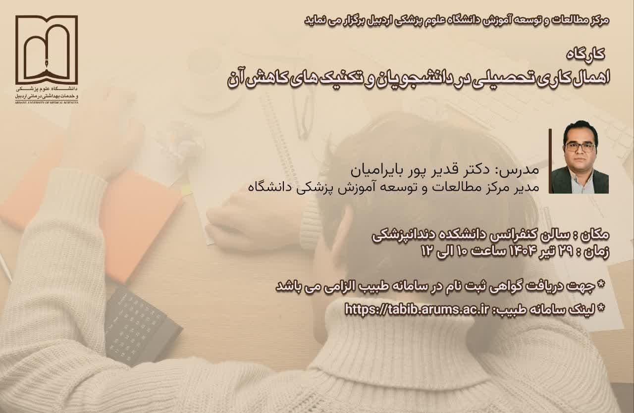 کارگاه آموزشی با موضوع "اهمال کاری تحصیلی در دانشجویان و تکنیک های کاهش آن" (ویژه اعضای هیات علمی دانشگاه)