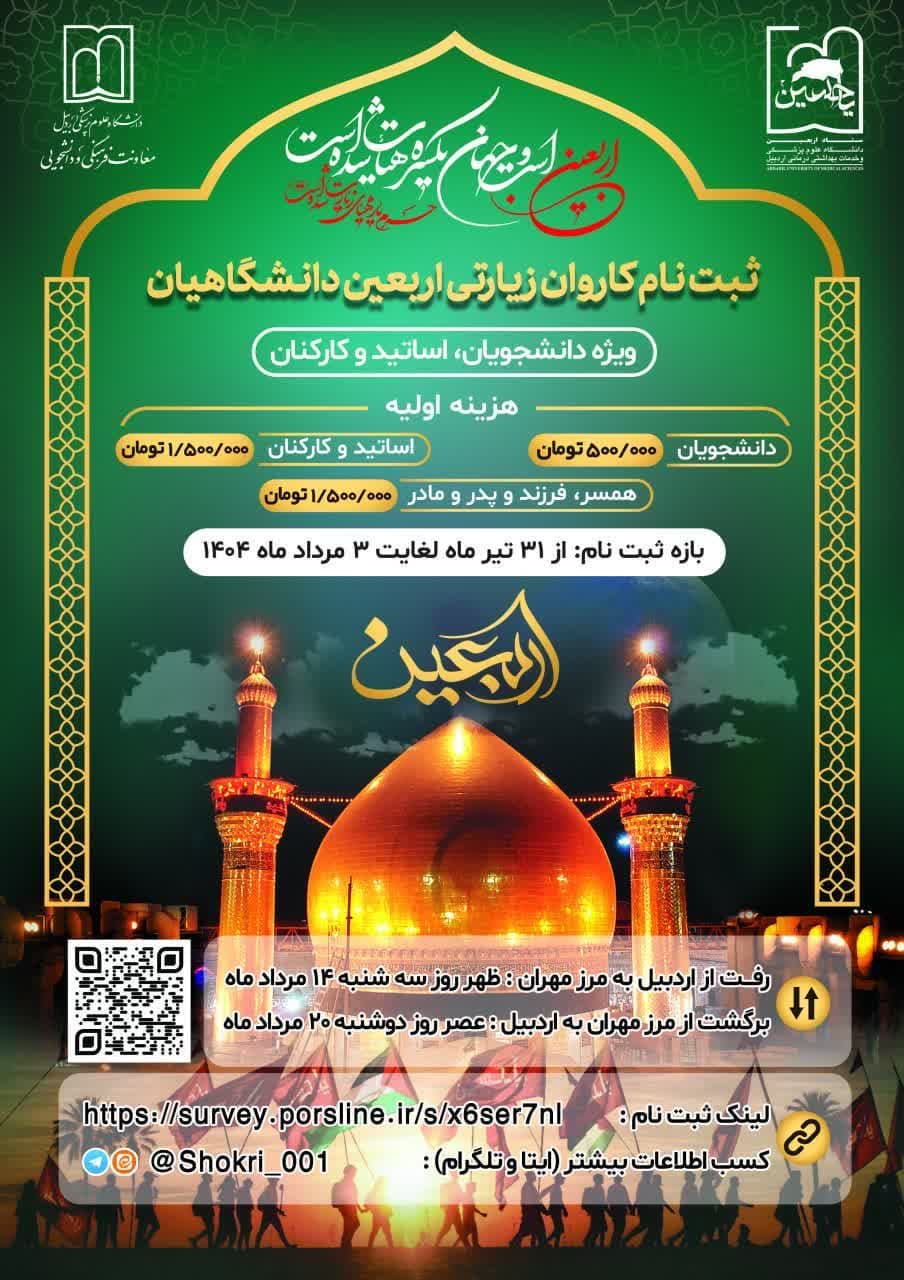 ثبت نام کاروان زیارتی اربعین دانشگاهیان ویژه دانشجویان، اساتید و کارکنان