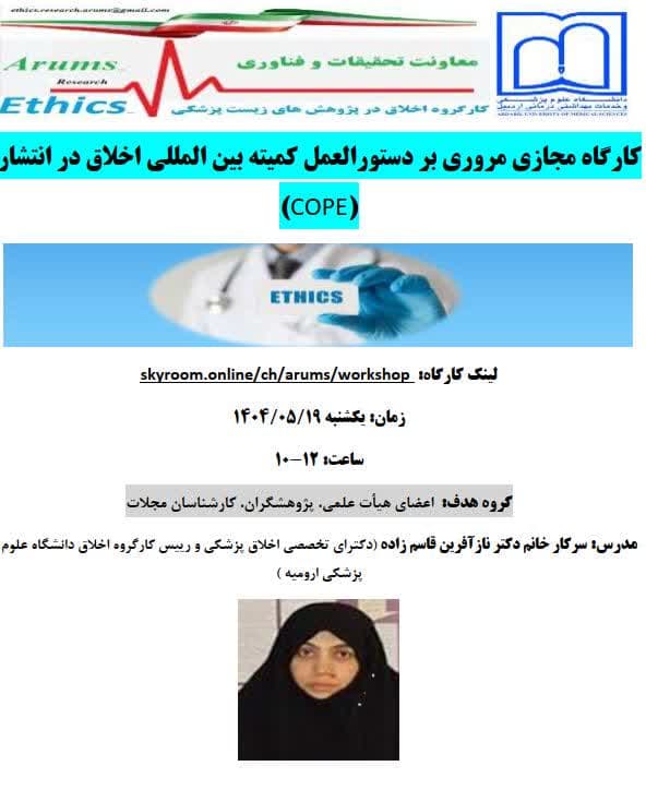 کارگاه مجازی با موضوع مروری بر دستورالعمل کمیته بین المللی اخلاق در انتشار ۱۳ مرداد ۱۴۰۴ | ۰۶:۰۴ کد : ۳۸۵۸۱ اخبار کوتاه ارسال به دیگران نام شما ایمیل شما ایمیل دریافتکننده ارسال انصراف تعداد بازدید:۱