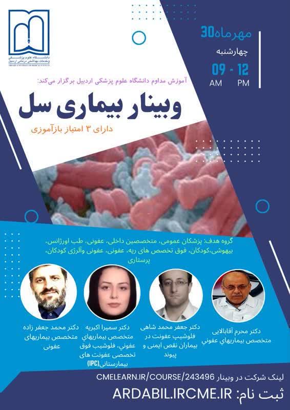 مرکز آموزش مداوم دانشگاه علوم پزشکی اردبیل برگزار می کند: وبینار بیماری سل ۲۳ مهر ۱۴۰۴ | ۱۳:۳۷ کد : ۳۹۷۸۵ اخبار کوتاه ارسال به دیگران نام شما ایمیل شما ایمیل دریافتکننده ارسال انصراف تعداد بازدید:۲۳ چهارشنبه ۳۰ مهرماه ۱۴۰۴ از ساعت ۹ الی ۱۲
