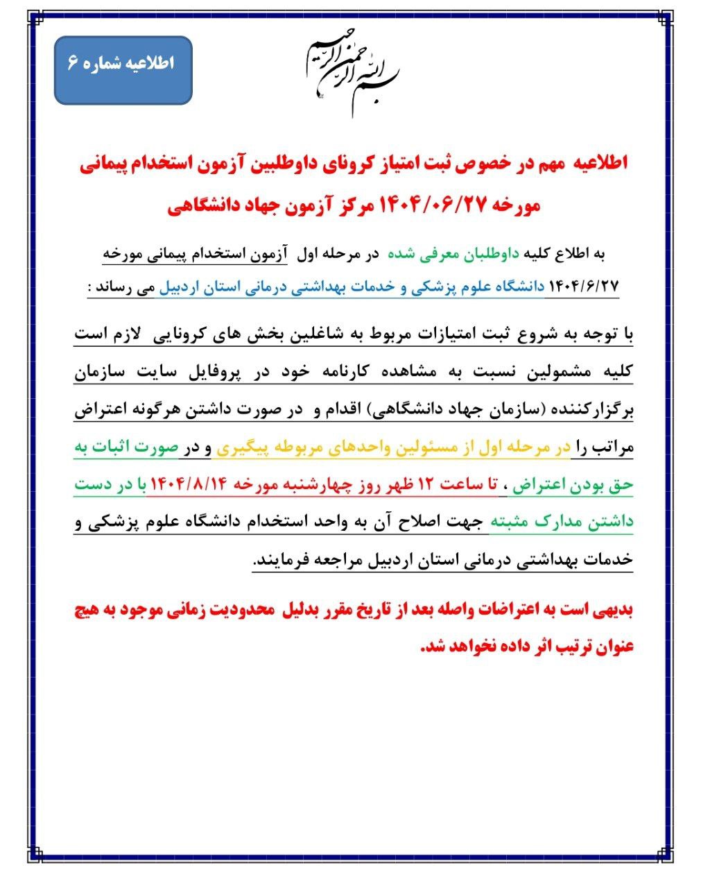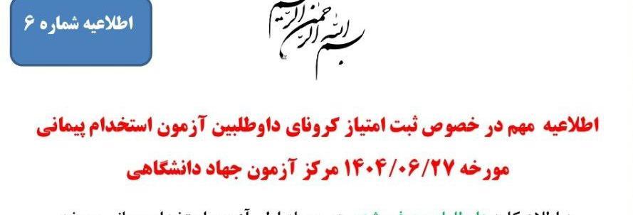 ✅ اطلاعیه مهم در خصوص ثبت امتیاز کرونای داوطلبین آزمون استخدامی ۲۷ شهریور ۱۴۰۴ مرکز آزمون جهاد دانشگاهی