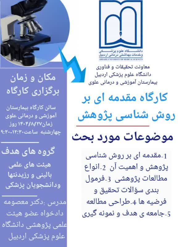 کارگاه مقدمهای بر روششناسی پژوهش ۱۹ آبان ۱۴۰۴ | ۱۳:۱۴ کد : ۴۰۱۸۷ اخبار کوتاه ارسال به دیگران نام شما ایمیل شما ایمیل دریافتکننده ارسال انصراف تعداد بازدید:۱۷