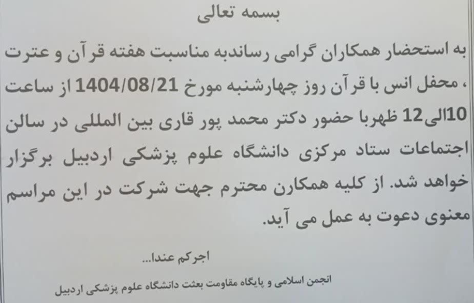 انجمن اسلامی و پایگاه مقاومت بعثت دانشگاه علوم پزشکی اردبیل