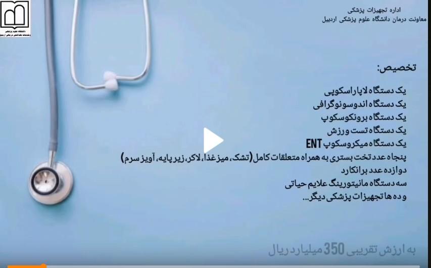 دکتر بهزاد داورنیا، رئیس دانشگاه با اعلام این خبر اظهارداشت: پیرو سفر اخیر دکتر سید سجاد رضوی، معاون درمان وزارت بهداشت، درمان و آموزش پزشکی به استان اردبیل و پیگیری‌های بعمل آمده در راستای ارتقای کیفیت خدمات تشخیصی و درمانی، یک دستگاه برونکوسکوپ و یک دستگاه تست ورزش به بیمارستان امام خمینی(ره) اردبیل و یک دستگاه لاپاروسکوپ و میکروسکوپ ENT و ده‌ها تخت و برانکارد به بیمارستان فاطمی اردبیل تحویل داده شد.