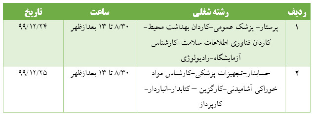 قابل توجه داوطلبان قبول شده نهایی آزمون استخدام قراردادی مورخ ۹۹/۷/۲۴